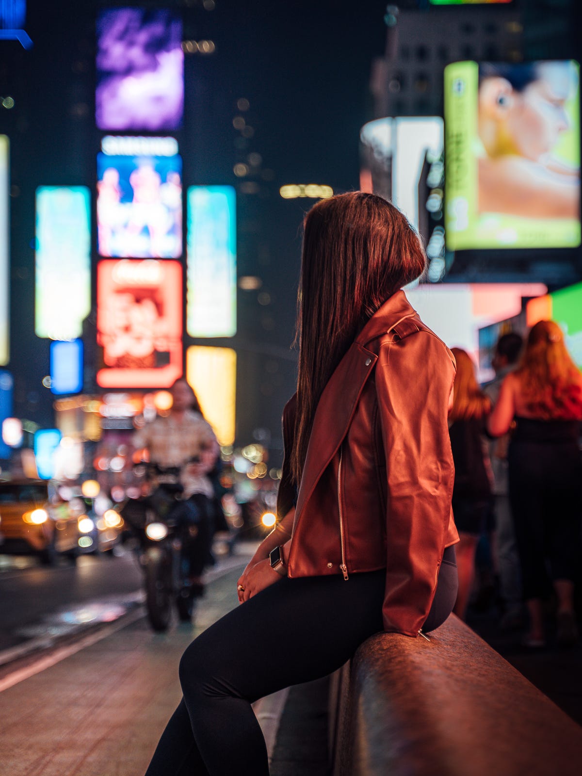 Times Square Photography Tip: Be patient with the crowds, there will be slight moments where there aren't any people in the background. Or you could also use a slower shutter speed (with a tripod or steady hand) to capture light trails from moving vehicles.